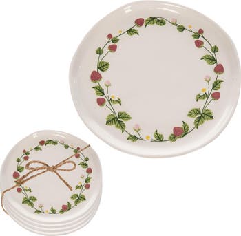 Enhance your spring gatherings with the delightful Dolomite Strawberry Appetizer Plates Set of 4. Crafted from high-quality ceramic, these charming plates feature a playful strawberry design that adds a touch of whimsy to your table setting. Perfect for serving appetizers, desserts, or snacks, each plate measures 7 inches in length and 6.75 inches in width, making them an ideal size for entertaining. Their vibrant design not only elevates your dining experience but also makes them a wonderful gift for housewarmings or special occasions. With the convenience of being both dishwasher and microwave safe, these plates are as functional as they are beautiful. Celebrate the season with the Dolomite Strawberry Appetizer Plates, where style meets practicality in every bite.