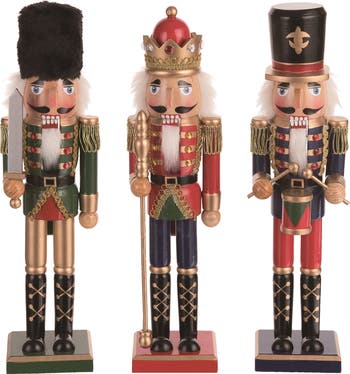 • Charming set of 3 wooden nutcracker figurines adds a festive touch to your holiday decor.
