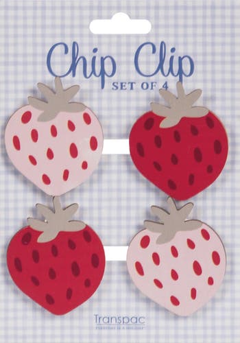 Transpac Wood Strawberry Bag Clips Set of 4 Multicolored for Spring Kitchen Storage and Decor, Main, color, Multicolored