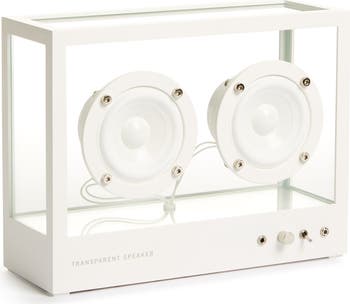 Modernize your home stereo set up with this minimalist, see-through speaker that sounds just as great as it looks. Stripped down to an aluminum uniframe with tempered glass panels, it effortlessly blends into any setting or décor.