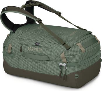 Exterior features: Weather-protected duffle compartment, zip end pocket for quick access to small essentials and four handles and a full-yoke backpack harness with sternum strap. Eight lash points allow for strapping the bag to roof racks, pack animals and other Transporter bags.