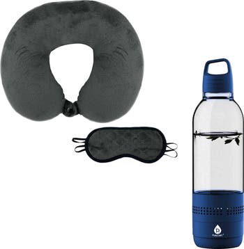 Travel Comfort & Entertainment Bundle 2-in-1 Water Bottle Speaker & Memory Foam Travel Pillow with Sleep Mask