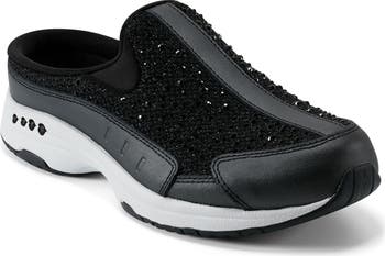 Tonal studs lend a subtle touch of glamour to the breathable knit upper of a sporty clog constructed with cushy arch-support and a durable sole.