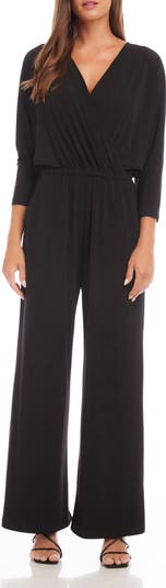 Be a jettsetter (or stay closer to home) in this ultra-comfy jumpsuit made from wrinkle-resistant stretch-jersey fabric and fronted with a flattering wrapped bodice. A gathered waist and flowy wide legs bring sophistication to this on-the-go look.