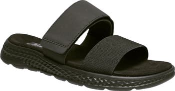 This sporty slide sandal set atop a cushioned footbed and lightweight TravelTrek sole gives you comfort wherever you go.