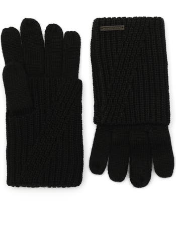 A foldover cuffs doubles up the layers for extra warmth in these soft, wool-blend gloves in a mix of fine and chunky stitches.