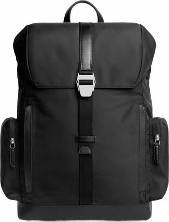 - Large drawstring compartment with a flap-top secured by snap buckle lock