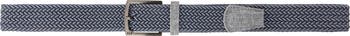 Woven elastic cording wrapped in blue and grey distinguishes a belt styled with a gleaming buckle to cinch the appeal of any sporty look.