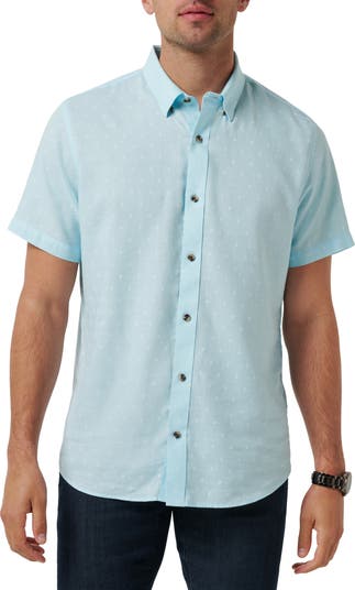 Get your vacation on in this cotton button-up shirt that's breezy and cool.