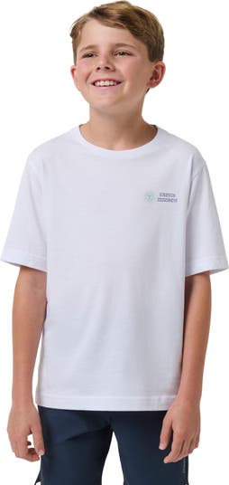 A sunny logo graphics will leave them daydreaming of beach days in this crewneck T-shirt crafted from soft, breathable cotton.