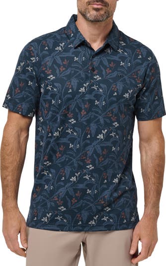 Soft cotton-blend jersey brings easy-wearing comfort to a polo scattered in dark flowers and trimmed with a straight hem designed to stay untucked. Pair it with practically anything in your casual wardrobe to add a sporty finish to a going-out look.