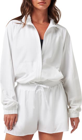 Channel effortlessly chic athleisure style in this easygoing and lightweight zip-front jacket.