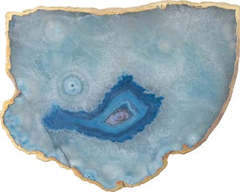 - Made of authentic blue agate stone with hand-finished gold edging