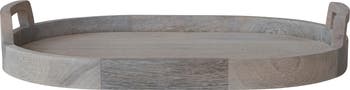 Add a touch of organic elegance to entertaining or décor with this Oval Mango Wood Tray. Crafted from bleached mango wood, it features natural grain patterns and smooth contours, blending seamlessly into Scandinavian, Boho, Global, Modern, and French Country interiors. Designed for both style and versatility, it serves refreshments, organizes kitchen essentials, or showcases decorative accents with effortless charm. Its durable mango wood construction ensures lasting quality, while the bleached finish enhances its raw, understated beauty. Measuring 18 inches in length, 12 inches in width, and 3 inches in height, this tray offers both function and aesthetic appeal in any space.