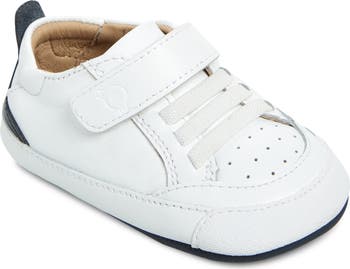 Little ones can toddle about in sporty style with this premium leather sneaker that has a perforated toe for comfy ventilation.