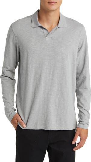 This polo made from slubbed cotton feels just right on off-duty days with its sporty Johnny collar and cozy long sleeves.