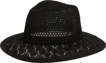 Dream of your next destination in this airy open stitched hat designed in a classic Panama silhouette with a wide brim to shield you from the sun.