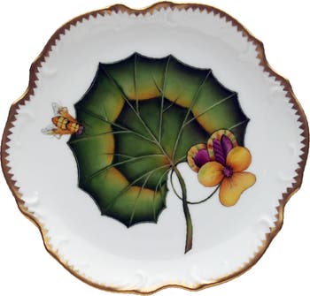 Limited edition porcelain hand painted with a gold border design. Made in Budapest.