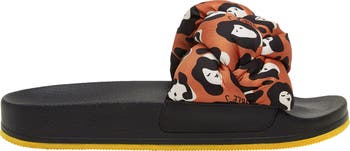 Classic pool slides meet maximalism in these fab-u-lous slip-ons. Ideal for your next sunny getaway or swapping out your old house shoes, these babies feature a moulded footbed and a padded braided strap crafted from silky twill in our most vibration-raising prints. Do as J.J. does and wear with the jazziest socks you can find.