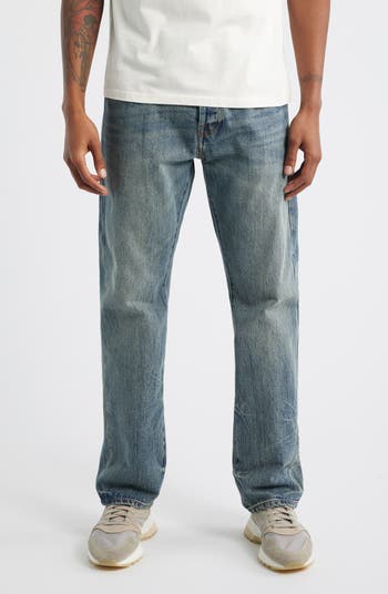 Heavy whiskering and grungy fading bring built-in history to jeans cut from rigid denim in a relaxed, straight-leg fit. Helmet Head icons embroidered on the back pockets let you rep the brand to everyone walking behind you.