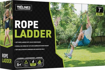 TRELINES: CLIMBING ROPE LINE 7FT - TOP SELLING LINE ACCESSORY! Kids love to play on Rope Ladders as they can be challenged to climb, and swing as it moves back and forth. This 7` Rope Ladder is made of Premium Wood Dowels which are non-slip and durable nylon rope. Attach it to a tree branch or hang from Trelines Ninja and Swingset lines. Fairly easy setup with no tools needed, except potentially a 6` step ladder. UNLEASH YOUR INNER ADVENTURER: Perfect for backyard parties, family gatherings, or simply enjoying quality time outdoors, this climbing rope line encourages active play, boosts confidence, and creates unforgettable memories that last a lifetime. TRELINES: Where the fun grows on trees. Experience nature like never before with Trelines.