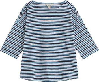 Dropped shoulders enhance the relaxed fit of this everyday top updated with elbow-length sleeves and cut from striped organic cotton.