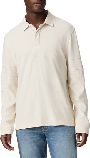 Pieced stripes ring the sleeves of a rugby shirt made of pale cotton jersey with long sleeves and covered buttons maintaining the classic winning look. Perfect for game time, downtime and every time in between, it's a great addition to any sporty wardrobe.