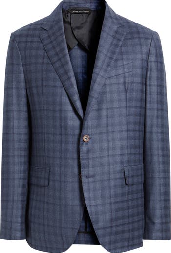 Subtly brushed Italian wool patterned in a plaid of dusky, shadowy blues brings all-occasion versatility to a sport coat with constructed constructed emphasizing the traditional tailored waist. Pair it with both soft and polished fabrics and wear it with or without a tie to effortlessly complement any semiformal look.