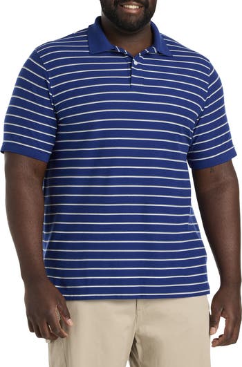Stripe it rich. Iconic style is yours with this tri-colored polo shirt. Crafted in a soft and lightweight cotton blend, it's comfortable, easy-to-wear and gives you the freedom you need to move without restriction. Designed at DXL with precise proportions and an ideal fit for Big and Tall guys, it's comfortable, easy-to-wear and allows for the freedom to move without restriction.