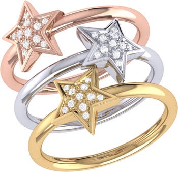 Our dazzling star tricolor diamond ring offers three distinct rings in one exquisite piece. Expertly handcrafted with timeless beauty and grace.