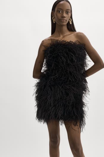 You deserve to standout. Elegant and captivating, the Triana is in a league of its own. Mixed feathers offer eye-catching flounce and alluring texture and a mini cut that elongates your legs. Whether for an event or a night out, you cannot go wrong with this unique number.
