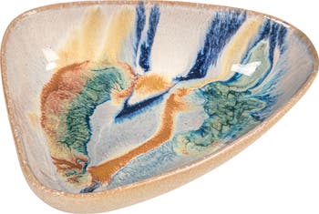 Triangular Abstract Artistry Stoneware Bowl, Multicolor