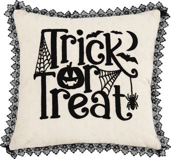 Trick Treat Black And White Embroidered Throw Halloween Pillow, 18" x 18"