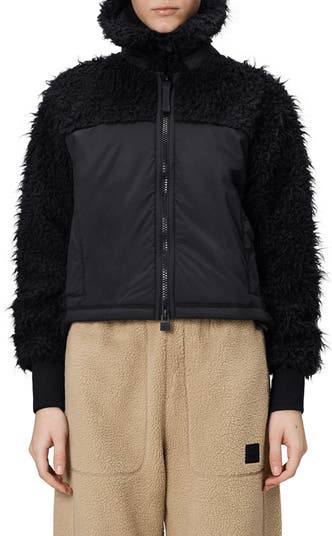 An insulated hood tops this substantial jacket that features placed shaggy fleece for interesting texture and is made for breathable warmth when the weather turns chilly.