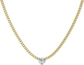 Baguette-cut lab-grown diamonds frame a trillion-cut lab-grown diamond set with blackened-gold prongs as a striking focal point of this 18-karat-gold curb-chain necklace.