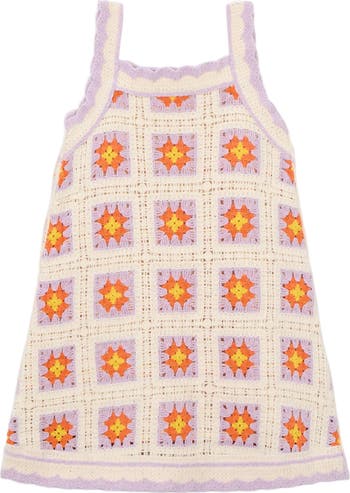 A handcrafted piece with intricate detailing, designed to bring artisanal charm to a child’s wardrobe. Its flared silhouette and decorative finish make it ideal for festive or casual occasions. Sleeveless design with wide shoulder straps for comfort. Scalloped trim and granny-square pattern add vintage appeal.