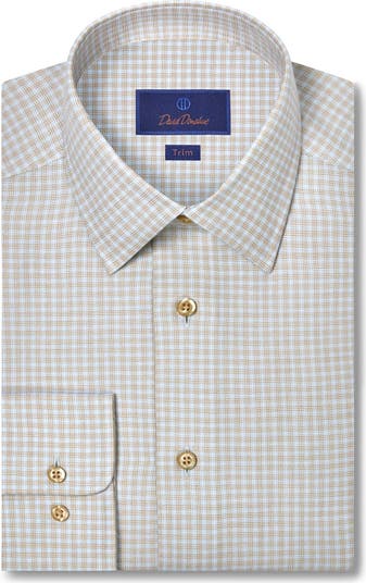 David Donahue Trim Fit Check Cotton & Cashmere Dobby Dress Shirt, Main, color, Dune