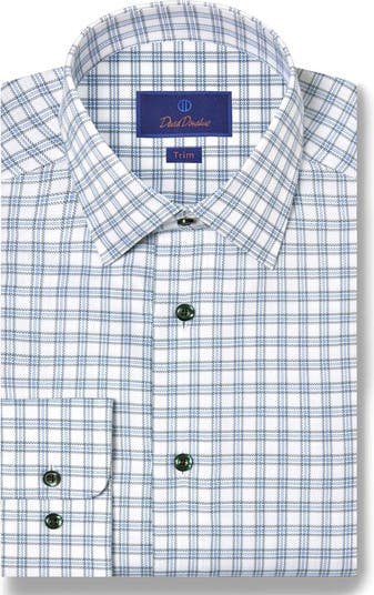 Trim Fit Check Cotton Herringbone Dress Shirt