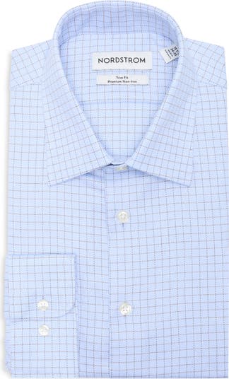 Breathable cotton patterned in a handsome check distinguishes a dress shirt designed with a simple, classic French placket and designed to complement any semiformal outfit. The non-iron fabric resists creases and wrinkles to keep you looking smart, even when you travel.