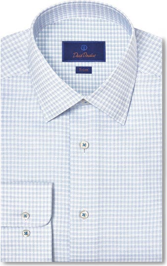 Trim Fit Check Stretch Cotton Twill Dress Shirt