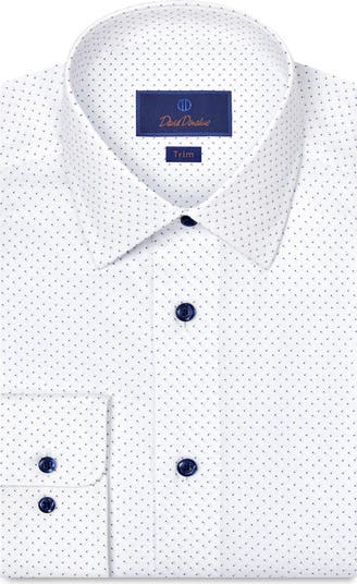 Trim Fit Geometric Dot Print Stretch Cotton Dress Shirt