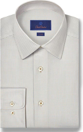 - David Donahue Trim fit is considered a Slim fit; fitted through the chest, armholes and sides.