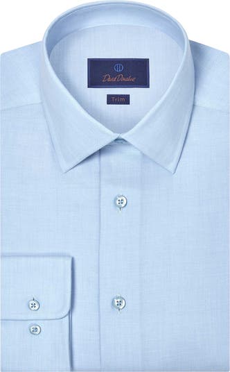 Trim Fit Light Blue Cotton & Cashmere Twill Dress Shirt