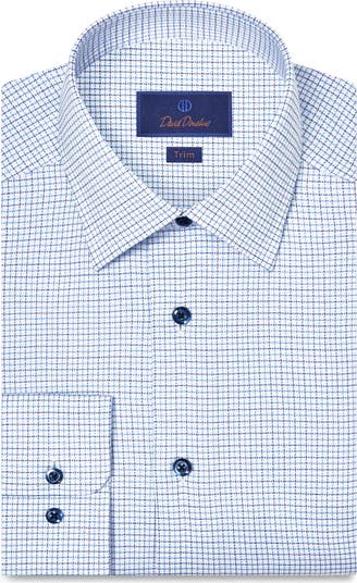 Trim Fit Microcheck Stretch Cotton Twill Dress Shirt