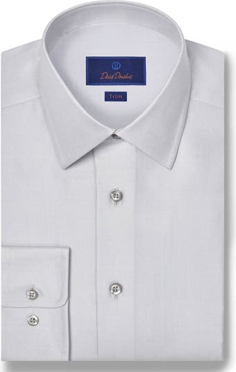 Trim Fit Pin Dot Light Grey Cotton & Silk Dobby Dress Shirt