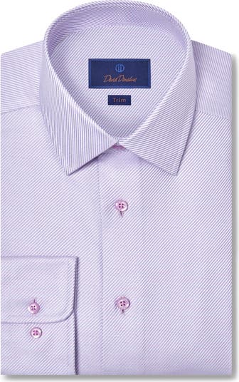 Trim Fit Textured Twill Cotton Dress Shirt