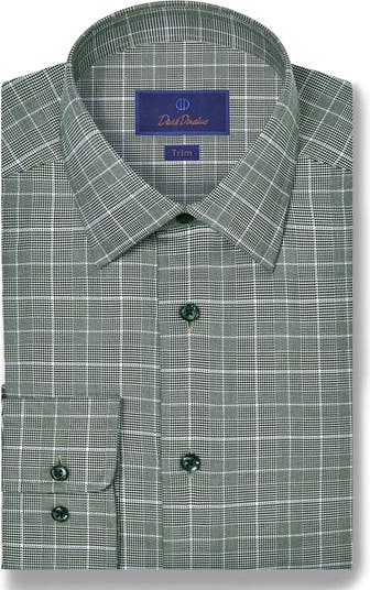 Trim Fit Twill Glen Check Cotton Dress Shirt