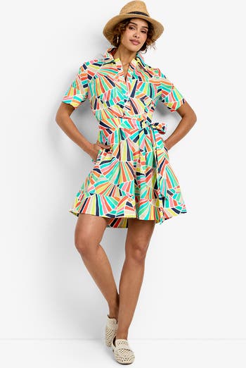 The timeless shirtdress gets a playful update with this colorful, retro-inspired print in airy cotton voile. Featuring a point collar, front half placket, and short sleeves, this dress offers a chic look. The adjustable, removable belt cinches the waist, while two front patch pockets and side pockets add stylish practicality.