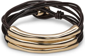 - Leather bracelet with three sterling silver-plated or 18K gold-plated strands