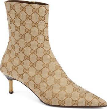 Introducing spring/summer '26, this tonal bootie pays tribute to a glamorous era. Defined by a point toe and stiletto heel in goldtone finish, it's crafted from lightweight yet structured GG canvas in a vintage-inspired shade of sand.